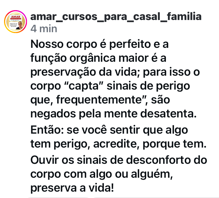O corpo te falará sobre segurança e perigo, em lugares e pessoas que a mente desatenta, talvez não veja problema algum.